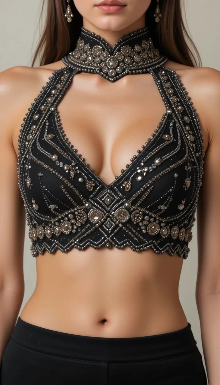 Black Embroidery Blouse 2025: Stunning Back Designs with Free AI DeepSeek AI-Generated Images